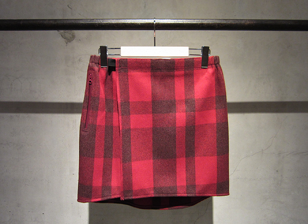 ベルクロによるワンタッチ脱着。そしてウエストのゴムにより、装着時に抜群のパフォーマンスを発揮する巻きスカート、2011年度版。今回はパンキッシュなオリジナルウールチェック版。腰周りを冷さないこと、、、これこそ冬山を乗り切るための一つのコツと考えるからこそ、しつこく提案し続けるアイテム。