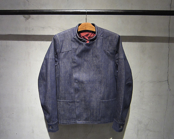 絶対色落ち進行しないデニム地を使用した裏地付きジャケット。ライダースをベースにディティールを削ぎ落とし、ミニマルな印象に仕上げていいます。時期的にも時代的にもプッシュしたい「MODERN NINJA」な一枚です。