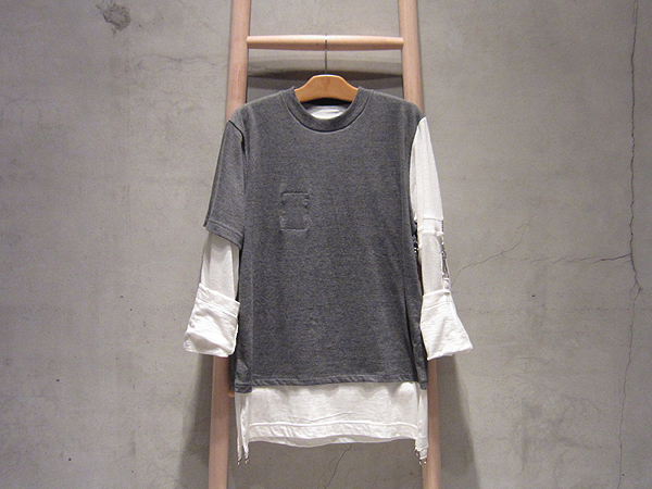 パンクといえば!のモスリンシャツ。その天竺版が登場。ガーゼに風合いが近い「柔らか天竺(夏にこそお試し頂きたいふわふわな肌触り)」を使ったアシンメトリーなレイヤード仕様。元ネタに忠実なナス管は、暑い時の袖まくりに使っても良し。トリッキーなくせに、案外実利的ということがポイント。全くもって見えていませんが、左胸内側にはソローのワッペンを上下逆さ付け。パンクを山に持ち込み続ける姿勢の「ご健在っぷり」をアピールするには充分すぎるくらいの一枚。
