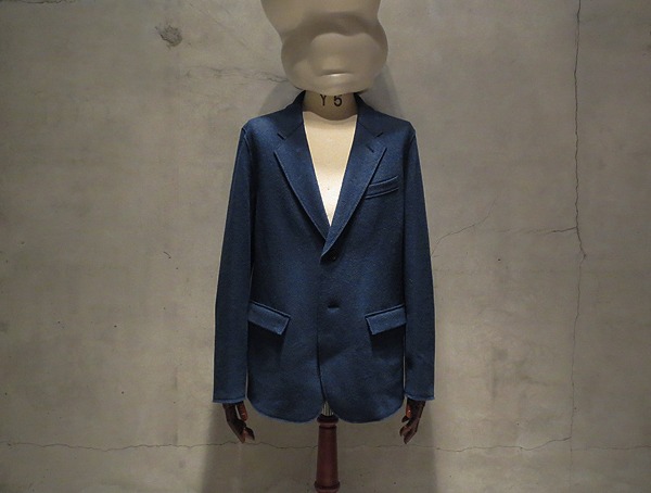 デザイナーの熱い情熱が乗った軽めウールの一枚ものジャケット。素材を思い切って断ち切りで使用、ほつれも出にくい処理がされています。パタンナー出身のデザイナーが作るだけあって体にフィットしつつ美しいシルエットを実現。ブルーとグリーンが混ざった様な何とも言えないカラーリングもポイント。都会的に仕上げた今期注目の逸品です。