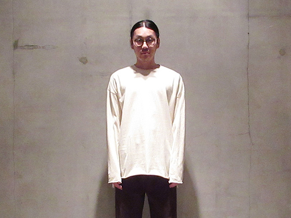 やや起毛感のあるソフトな綿生地を使用したクルーネック長袖TEE。同ブランドらしい、ややゆったりと調整されたシルエット。カットオフされてロールアップする裾の雰囲気や、段差が出るようにデザインされた袖口等、見所は満載です。