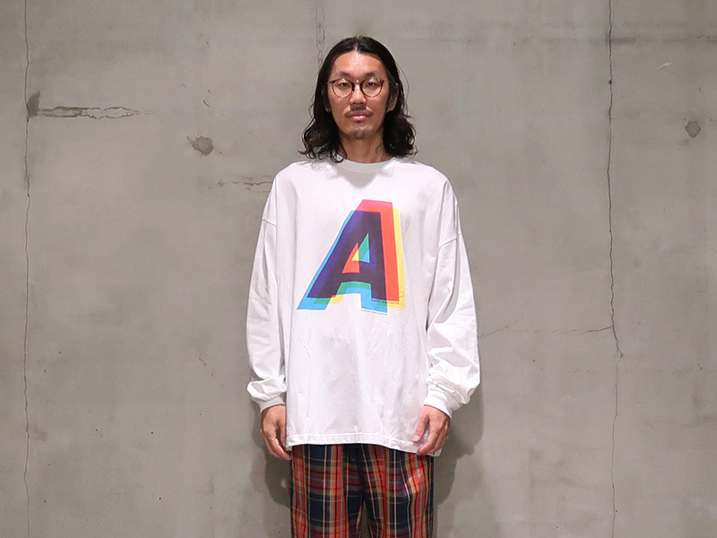 レギュラーウェイト5.6ozボディのビッグシルエット・コットンロンTEE。CMY(シアン×マゼンダ×イエロー)がオーバーラップしたシーズナルアイコン”A”をプリント。シーズンを通して活躍が期待される一枚です。