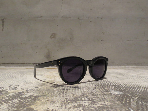 がっちりとした印象のサングラス。フレームはセルロイド。少々丸めのレンズ。こちらも時期的に◎。収まりの良い逸品です。