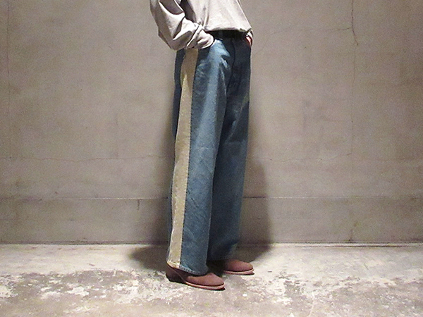 上記ジャケットと同素材となるバギーパンツ。微起毛された独特な質感のコットン100%生地を使用。品のあるワイドストレートシルエット&同ブランドらしい9分丈、やや深めの股上も特徴。こちらも全体的にバランス良く整っている印象。利用頻度高めでお使い頂ける万能パンツとしてオススメ致します。