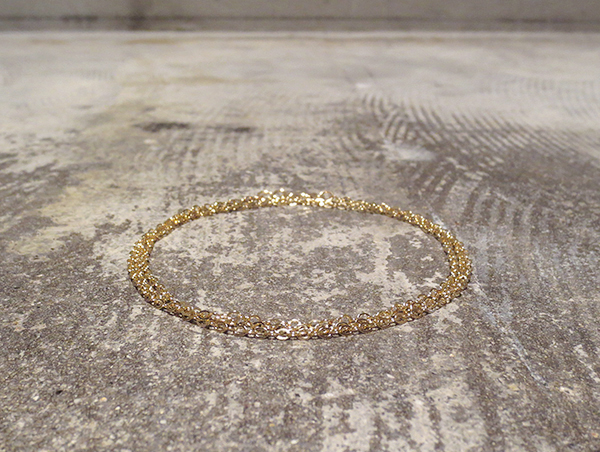 同じく今期プッシュしたいゴールドのブレスレット。ブロンズに金メッキされたモノ。そのゴールドの輝きと細く繊細なフェイスはどことなく都会的な印象。(アメリカ製)