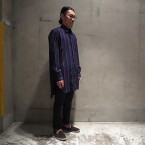 先日ご紹介した「FRILL GOWN」と同素材(ウール100%ストライプ生地)で作られたロングシャツ。上品な素材感とレイヤード時に有効な長めの着丈、サイド部分の深めスリットが特徴。シンプルなディティールと適度な存在感が良いバランス。