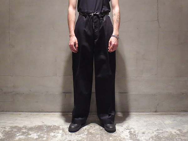 先日入荷したOsmo Wool Pantsのシルエット違い。しっかりとしたコシ感とドライなタッチが特徴となる撚糸ウール生地を使用した定番型ストレートパンツ。毎シーズン提案している、裾が付属のベルトで絞れるタイプです。