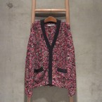 カラーパレットが楽しい特殊な糸で編み込まれたニットカーディガン。同じくしっかり重めの質感と、別糸でリブ編みされた前立て/ポケット口が引き立っています。この春夏シーズンの主役としてもお勧めです。