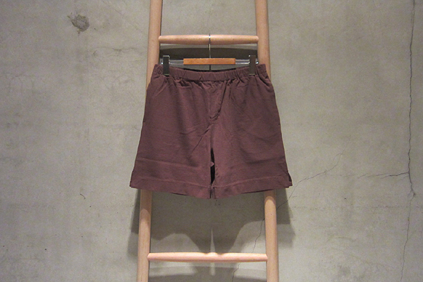 同じく春らしい薄手のナイロン地を使用したビックショーツ。腰ベルト内側部分はコットン生地で切換え、リラックスして着用できるゴム入りイージータイプ。サイドハギ無しのパターンにデザイナーの密かな情熱を感じます。