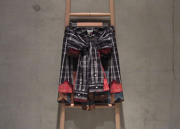 チェックシャツを3枚重ねて巻いている様に見える腰巻。重なった部分のストレスを解消しつつもディティール的には一切手抜き無し。これ一枚、日常的なスタイリングに巻くだけで不思議と「お洒落」に見えるスグレモノ。オールシーズンお使い頂けるのも◎。