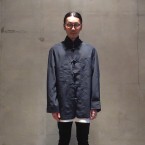 ポリウレタン混のストレッチデニム生地を使用した1枚モノの羽織りジャケット。ガバッと大きめのシルエット、太めの袖まわり、前合わせのテクニカルなカッティング&変形ダブル仕様、バックスタイルの腰ボタンも楽しいディティール。また同素材で提案されるハカマパンツにも注目。極端に深い股上&ぶかっと裾まで広く作られた極太シルエットは新しい予感を感じます。ぜひセットアップでご検討下さいませ。