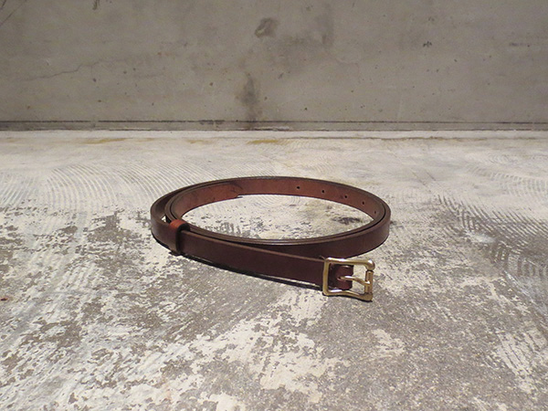 ブライドルレザーを使用したナロータイプのレザーベルト。程よくしっかり感のある一品&バックルの大きさもナイスバランス。ファッションとして少し長めの設定。スタイリングのアクセント出しにお使い下さいませ。