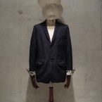 同じくオリジナルのウール生地を使用したダブル風ジャケット。思い切った断ち切り使いとふわっとした独特の生地感が特徴。若干着丈長めですが、よく体にフィットするグッドシルエットな逸品。