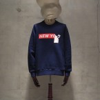 クルーネック/プリント入りスエット。ボディとプリントの配色が何とも「URU」らしい。脇のスリット+シェルボタンというディティールにも注目。