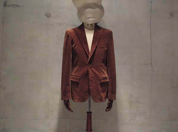 コーデュロイ生地を使用したピークドジャケット。ラペルの裏にカラークロスを使用し襟を立てても楽しい一枚。内側には鳥居の刺繍を施したお守りポケット付き。